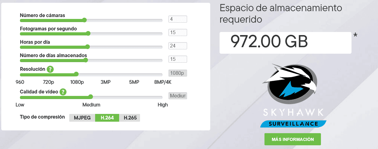 - Del tipo de imágenes grabadas. Si hay poco movimiento, la tasa de compresión es mayor. Si hay mucho movimiento, el vídeo ocupará más.