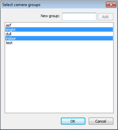 Puede escribir un nuevo nombre de grupo y pulsar Añadir (Add), o seleccionar uno o más grupos de la lista. Los nombres de grupo se usan para el control de acceso del Servidor Web (Web server) y para permitirle a Ud. configurar el sensor de movimiento (motion sensor) para disparar las cámaras en grupos.