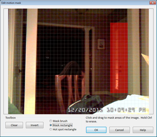Si ha identificado áreas de su imagen que están causando falsas alarmas, puede dejarlos al margen de la detección de movimiento.