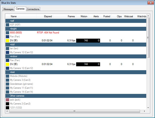 Además de la pestaña de mensajes, la ventana de estado tiene una página que resumen la actividad de cada cámara.